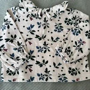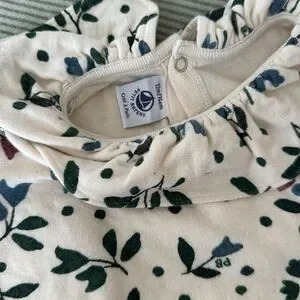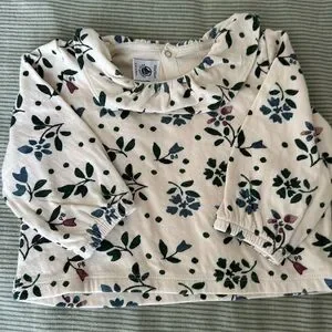 long sleeves shirt, petit bateau, 12m, cream with flowers, 100% cotton