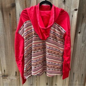 Free People Movement Hot Shot Printed Hooded Layer in Nordic Red Ridge Motif