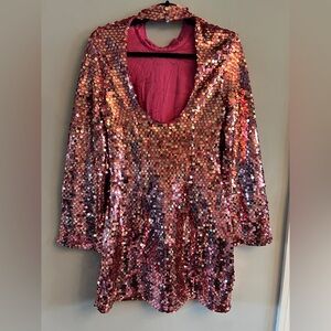 *New* Anthropologie Maeve Long-Sleeve Mock-Neck Sequin Mini Dress, Size Medium