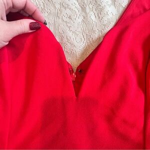 This stunning red dress features a chic long sleeve design, perfect for any occasion. Its elegant cut and vibrant color make it a standout piece in any wardrobe. Great for date night, valentines or just a day to paint the town red! Open back. New with tags!