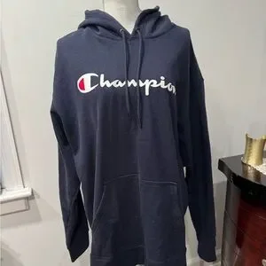Stay comfortable and stylish with the Champion Men's Navy Hoodie Sweater. Perfect for casual outings, this sweater offers a cozy fit and a classic look.