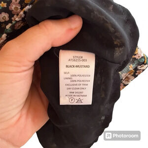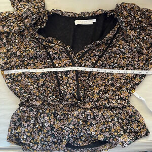 ASTR THE LABEL ~ Ximena Dark Ditsy Floral Faux Wrap Peplum Top in Black Mustard. Size XL. 100% polyester. In good preowned condition.