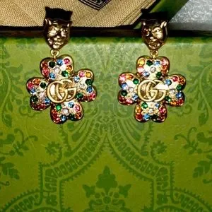 Gucci Lion Head Earrings Dangle Gold & Multicolored Crystals. Comes with a gift package, dust bag, box and a bag.