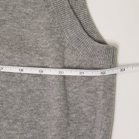 • The heather grey, pullover, V-neck vest has a regular fit with room in the chest and underarms.