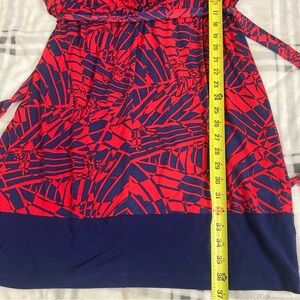Sangria Womens Dress 3/4 Sleeve V Neck Knee Length Size 14 Red/Blue