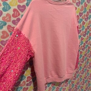 Pink valentines long sleeve, red love heart sparkle, pink sequin sleeves