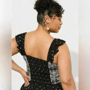 NWT TORRID Challis Smocked Ruffle Trim Crop Top