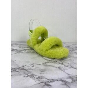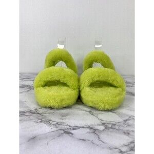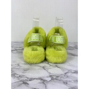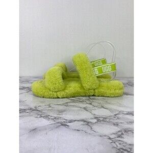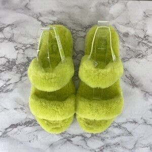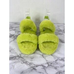 UGG NEON YELLOW FLUFF YEAH SLIDE SHEEPSKIN SLIPPER SANDALS, SIZE US 6