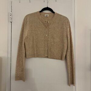 Aritzia Wilfred cropped wool "Sicily" cardigan in camel, size XXS.