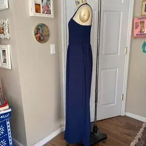 ROUGE Navy Blue Smocked chest Stretch Wide-Leg Romper Jumpsuit *LARGE*