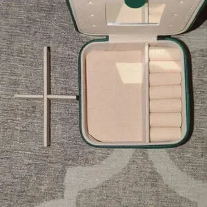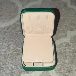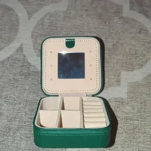 Green Travel Jewelry Case with Mirror, Vegan Leather, Gifts for Women