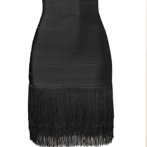 VENUS Bandage Bodycon Silhouette Sleeveless Purple Dress Features Layered Fringe @ Bottom Front/Back, Plunging V-Cut Neckline, & Zip Bodice Hidden Zipper @ Back Center...(Last Four Pictures Stock Photos in Black)