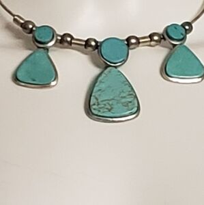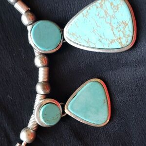Antique Turquoise Statement & Silver Tone Necklace.