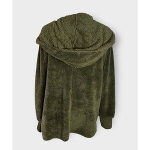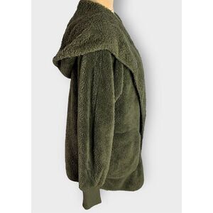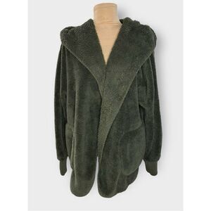 HEM & THREAD PLUSH FUZZY HOODED JACKET W/ POCKETS OLIVE WOMEN’S ONE SIZE
