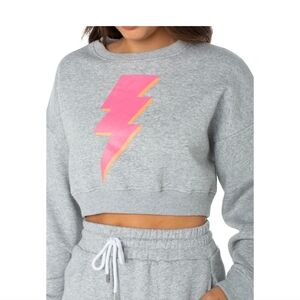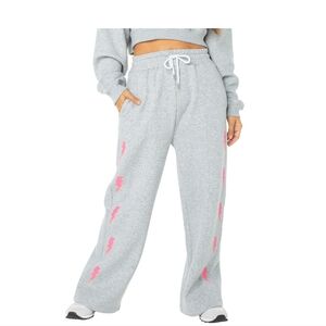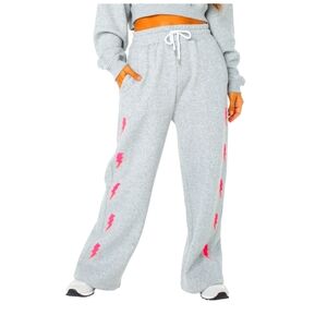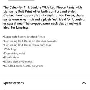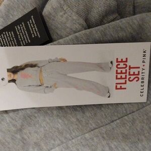 New Celebrity Pink Juniors Set w/Sweater and Wide Leg Pants w/Lightening Bolt Detail. Fleece Set Gray with Pink.