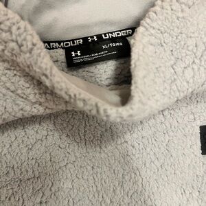 Stay cozy and stylish with this Under Armour sherpa pullover in size L. The mock neck and long sleeves provide warmth, while the pullover closure adds convenience. The gray color and solid pattern make this sweatshirt perfect for both casual and activewear occasions. Made with a blend of polyester and cotton, this fleece fabric type is soft and comfortable to wear. The garment care instructions are simple as it is machine washable. This pullover is perfect for outdoor themed activities during winter, summer, fall or spring.o