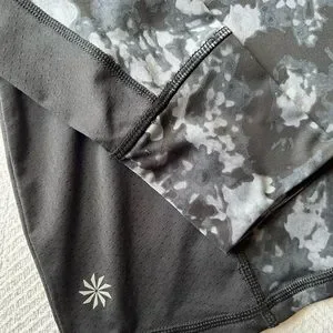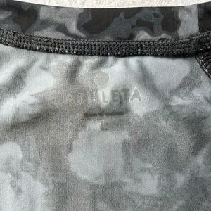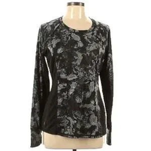 Athleta Runaway Workout Top in Black and Grey Print with Long Sleeves