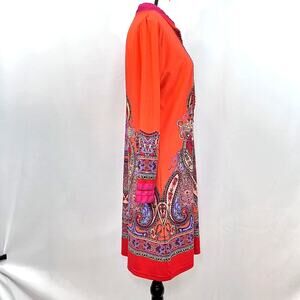 Calessa V neck embellished long sleeve dress tunic orange womens L