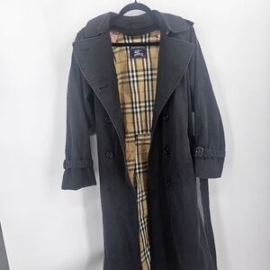 Burberry Vintage Trench Coat Black with Liner Nova Check Size 8 (X-Long Length)