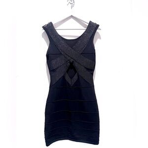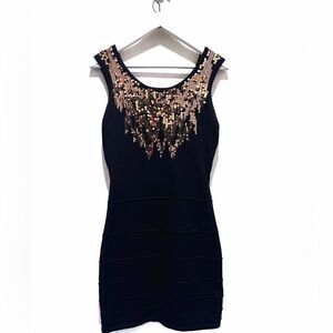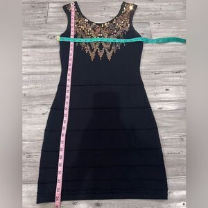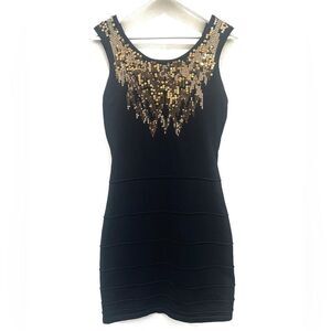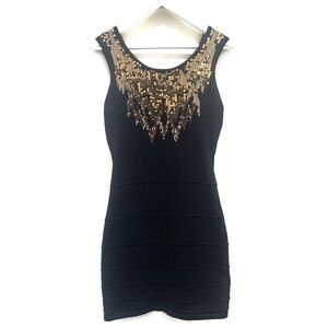 Y2K 2b Bebe Black Metallic Gold Sequin Bandage Sleeveless Cutout Back Slip