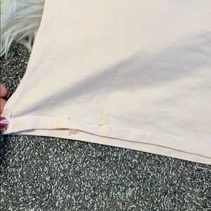 Layered top throughout the front of the tank top, plain back. Baby pink in color. Threads are starting to come undone in the bottom corner as pictured- not very noticeable when worn can be fixed.