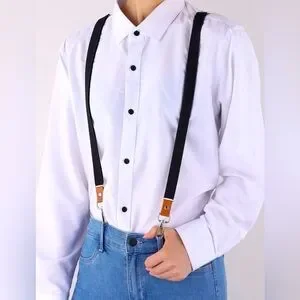 Elevate your style with this NWOB Black & Brown Men's Minimalist Suspenders, an essential accessory for the modern man who values both form and function.