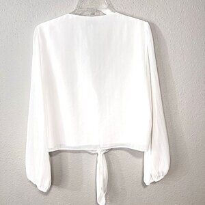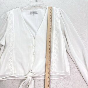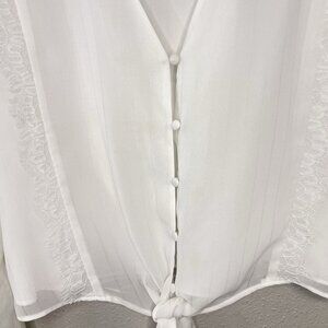 WAYF White Blouse Womens Size Large V-Neck Lace Trim Knotted Cropped Feminine