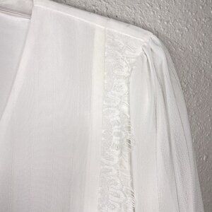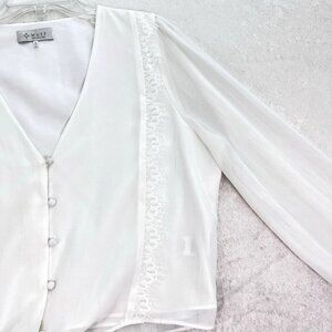 * WAYF White Blouse Womens Size Large V-Neck Lace Trim Knotted Cropped Feminine