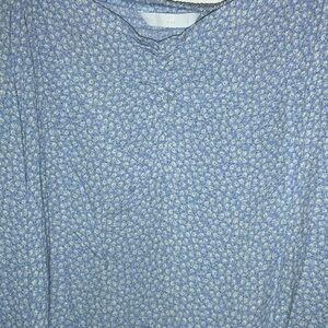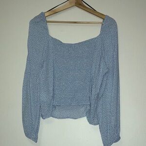 Women's Light Blue Puff Sleeve Floral Top Ruched Back