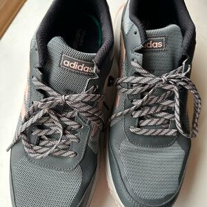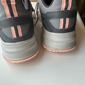Step out in style with these Adidas women's sneakers. Featuring a sleek gray design with pink accents, these shoes offer both comfort and fashion. Perfect for everyday wear.