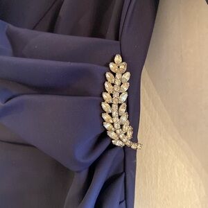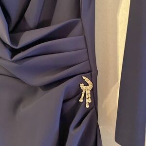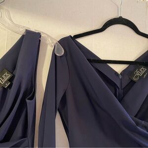 Elegant Alex Eveing dresses in deep royal blue. One with sleeves for church, and sleeveseleas for the reception wore as mother of the groom and felt stunning. Each dress I added heirloom jewelry pieces as accents. Shoes are Nina size 6.5, purse is from London (Urban Express). Sold all together, it just matches to well. Smoke free fur children home