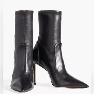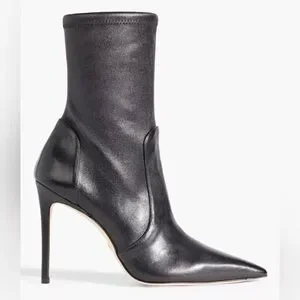 Stuart Weitzman Ankle Stretch Black Leather Pointed Toe 85mm Booties Shoes 10.5