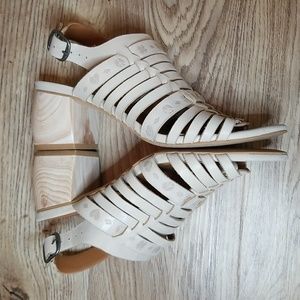 tan, open toe shoes, wood look, low heels, sandals, summer, vacation, back to school, college, off white, silver, almond toe, slingback, heels, resortwear, cream, tan