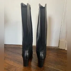 Practically new Clarks knee high leather boots women’s size 10. Smooth and glossy finish with a 3” block heel. 100% leather.