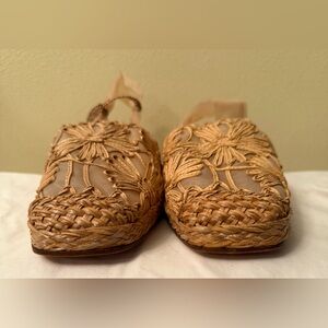 Stuart Weitzman Tan Floral Rufia, Organza Mesh Espadrilles, NWOB, Size 7-1/2