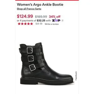 Franco Argo Ankle Bootie size 8 (ALSO FITS 8.5) MY REGULAR SIZE IS 8.5, CAN SIZE DOWN WITH THESE BEAUTIFUL LEATHER BOOTS! OPEN AT BUCKLE AREA!!! Worn only to try on carpeted floor. I just have too many boots!