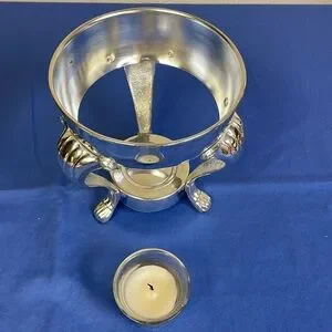 Vintage Kent Silversmith Glass Pitcher Carafe + Silver Pedestal Warmer Stand