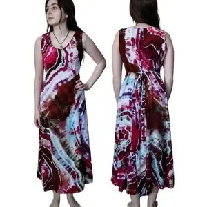 Small Maxi Length Tie Back Sleeveless Dress Geode Tie Dye Raspberry Lace