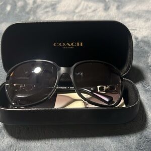 Packaged in a protective Coach case with microfiber cleaning cloth