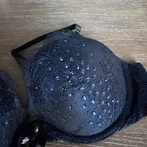 Victoria’s Secret Very Sexy Push-up Bra and matching garter with metallic lace and rhinestone detail