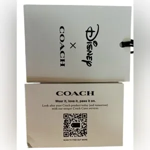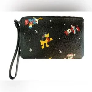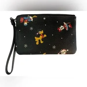 Charming Coach wristlet with Disney characters. Features a wrist strap for easy carrying. Perfect for adding a playful touch to your outfit. Same day shipping M-F. Smoke free home.