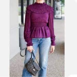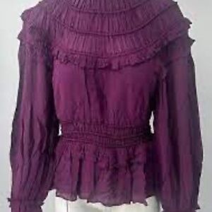 Farm Rio Burgundy Ruffled Blouse! Size S NEW with TAGS