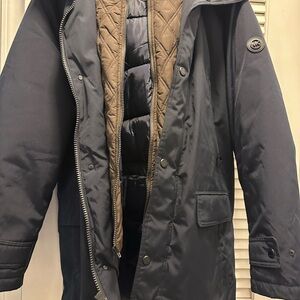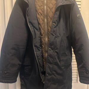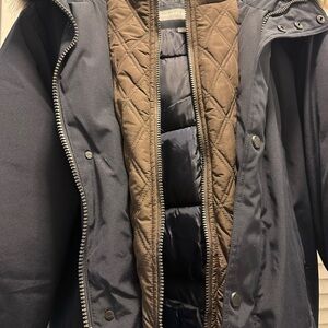 Stay warm and stylish with this black winter jacket. Perfect for cold weather, it offers comfort and durability. Excellent condition!