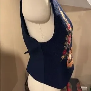 This charming fox and rose needlepoint vest from Eagle’s Eye is in beautiful condition. It is a perfect conversation piece. Size M. Dry clean only.