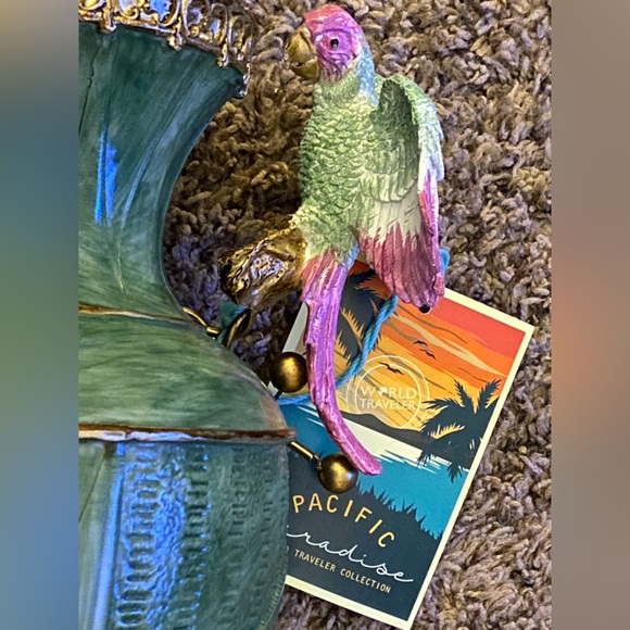 NWT Retro Vase Featuring Parrot 🦜Embellishment By- WorldTravelerPacific Paradise