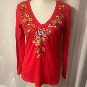 Johnny Was cotton t-shirt sz M gorgeous embroidery