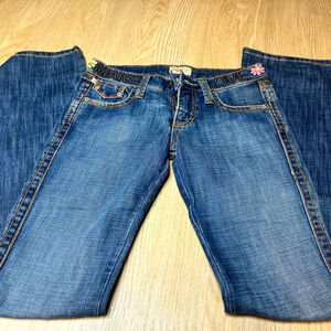 Studded with Flower Peace Sign on Back Pocket