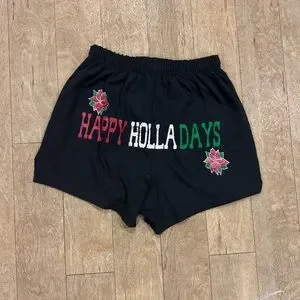 Black SOFFE Shorts Women's Medium ‘Happy Holla Days’ Christmas