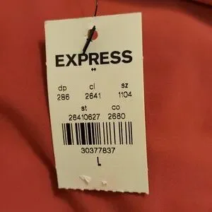 Express size large v-neck body con tank top. This is a body con tank which means it is to be fitted and runs smaller. Armpit to armpit measures 18 inches flat. Top of shoulder to bottom measures 25 inches. Made of 91% polyester and 9% spandex materials. New with tags.
