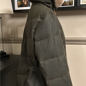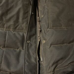 FILSON ‘Northwest’ Goose Down Parka, PERFECT CONDITION. Gorgeous FILSON Northwest Waxed Canvas Down Parka, Womens XL. Removable real shearling around adjustable hood, two-way front zip with snaps, two large outer hand pockets and one large inner snap pocket. Tailored women’s cut. Filled with 550 goose down. Part of an estate that we are trying to disperse. Would keep but it’s just too large on me. It’s in NEW condition. Amazing parka that would make a one of a kind gift. It has been authenticated by the FILSON store at the Galleria in Edina, MN. This is a RARE parka to find, especially in this condition. Top quality that is second to none.